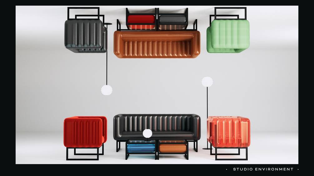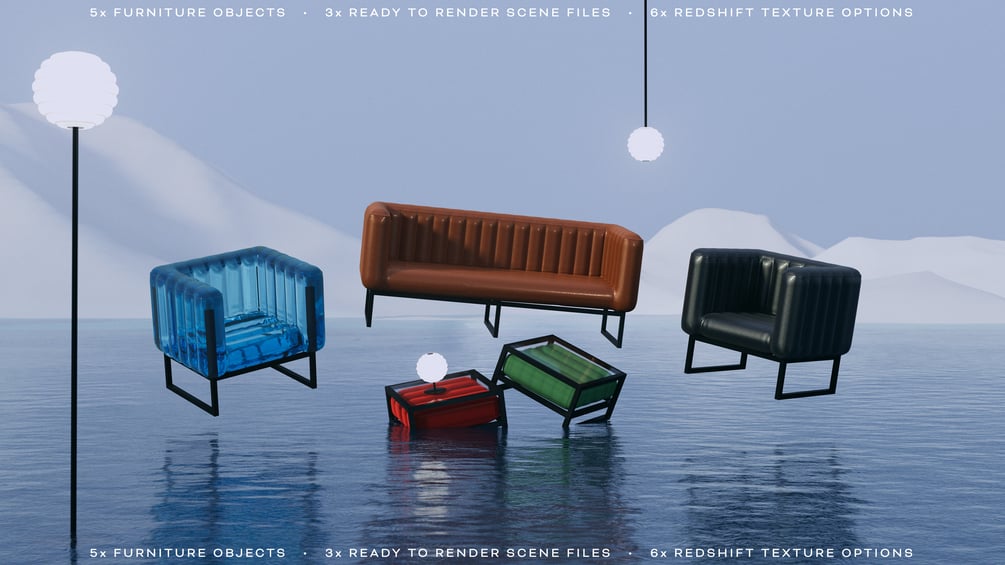 Inflated furniture pack. The scenes are ready to render in Cinema4D using Redshift.